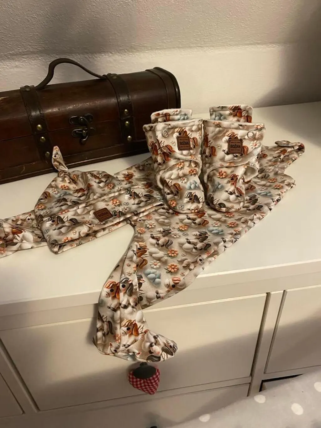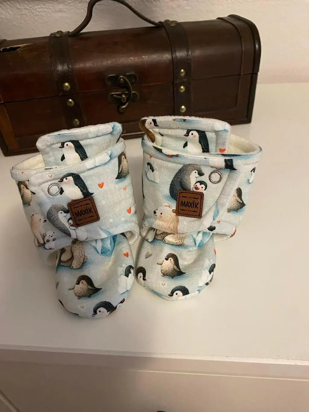 Střih jsem pro vás zpracovala v několika velikostech. Od novorozenecké velikosti po dítě cca 1,5/2 roku staré. Avšak upozorňuji, že střih je konstruován na elastické pleteniny a primárně jako botičky pro miminko do kočárku, na zateplení nožiček a do nosítka. Na chůzi je třeba tento druh capáčků podšívat protiskluzovým materiálem. Nejsou tedy určeny pro chodce.