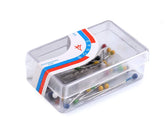 Jsou balené v malé plastové krabičce o rozměrech 3,7 x 2,5 x 1 cm.